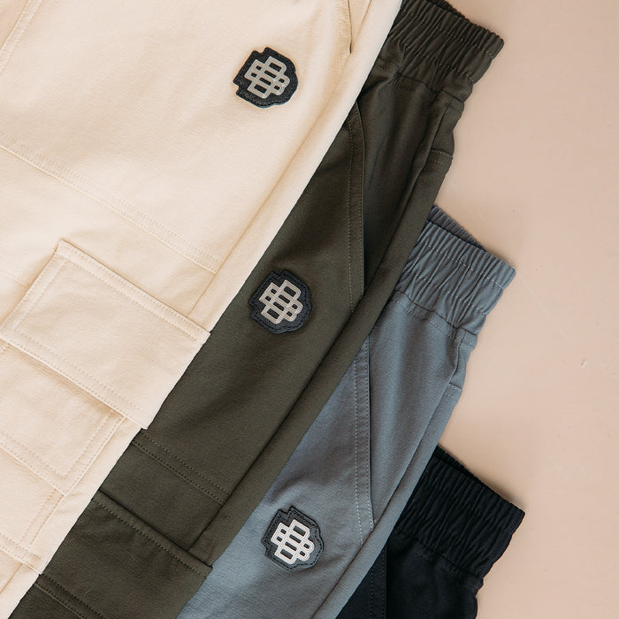Ofrecemos pantalones cargo para hombres, mujeres y niños en diferentes colores.