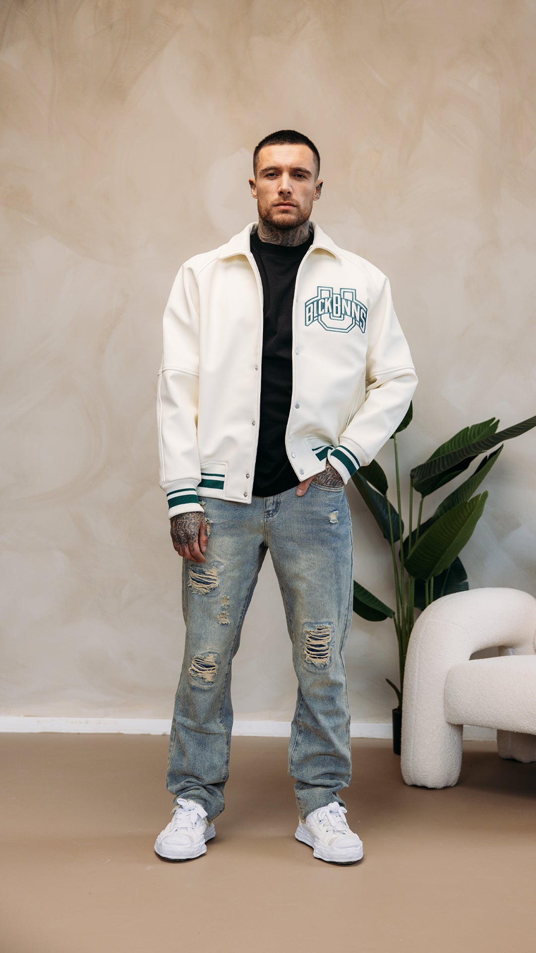 Destruido El aspecto destruido es un efecto angustioso. Se puede ver como una forma de arte para hacer que la mezclilla se vea usada o única. Las piedras se agregan en medio del proceso de lavado para aplicar el aspecto destruido.