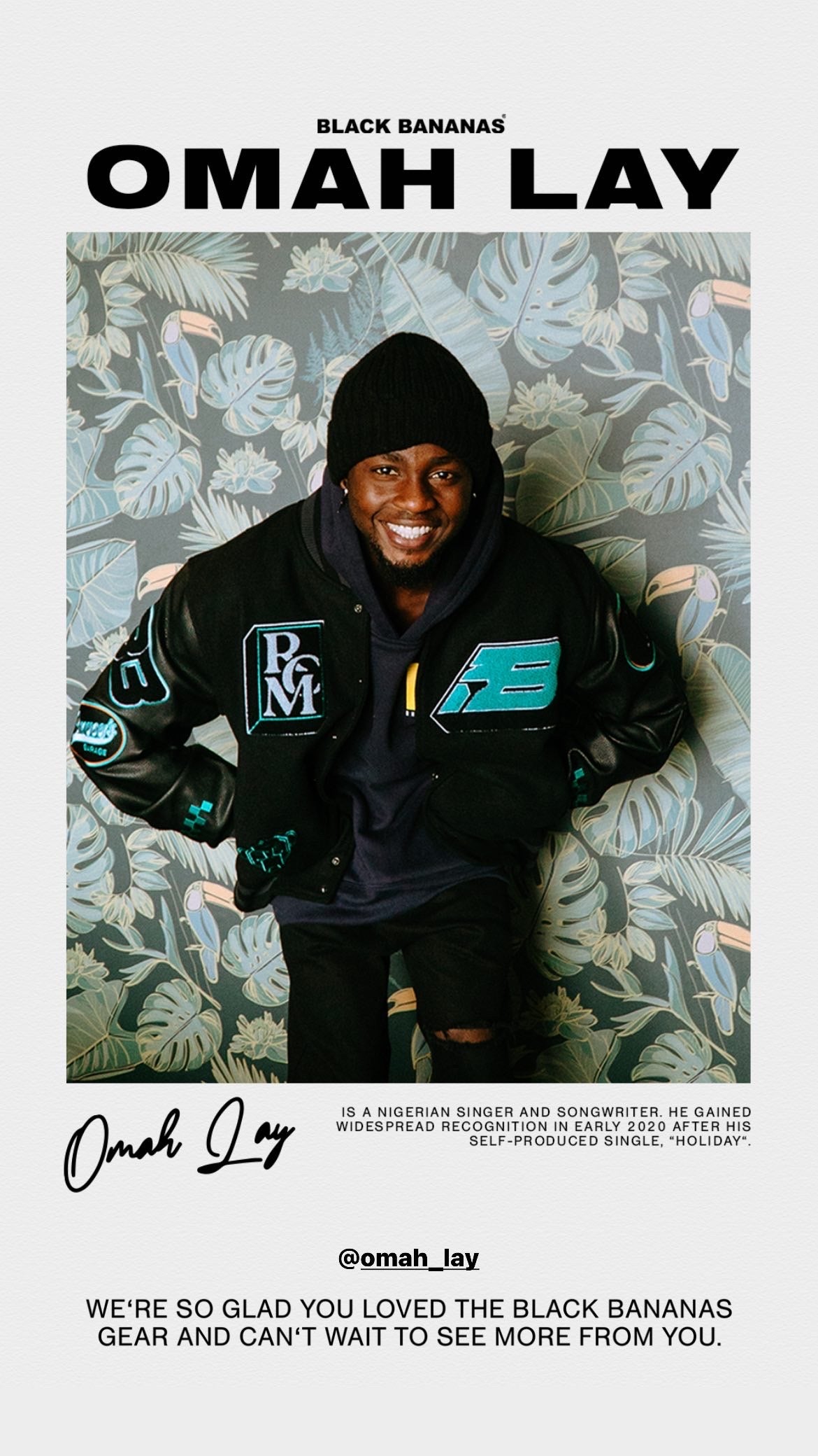 Un gran aplauso para @omah_lay por lucir la nueva colección de Black Bananas . El equipo de Black Bananas se unió a él en su último concierto en Melkweg Amsterdam.