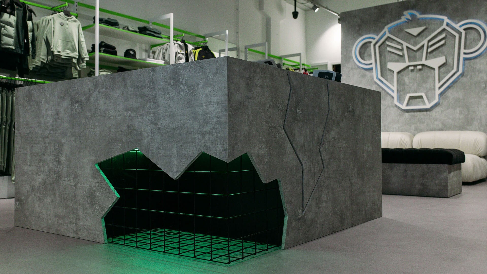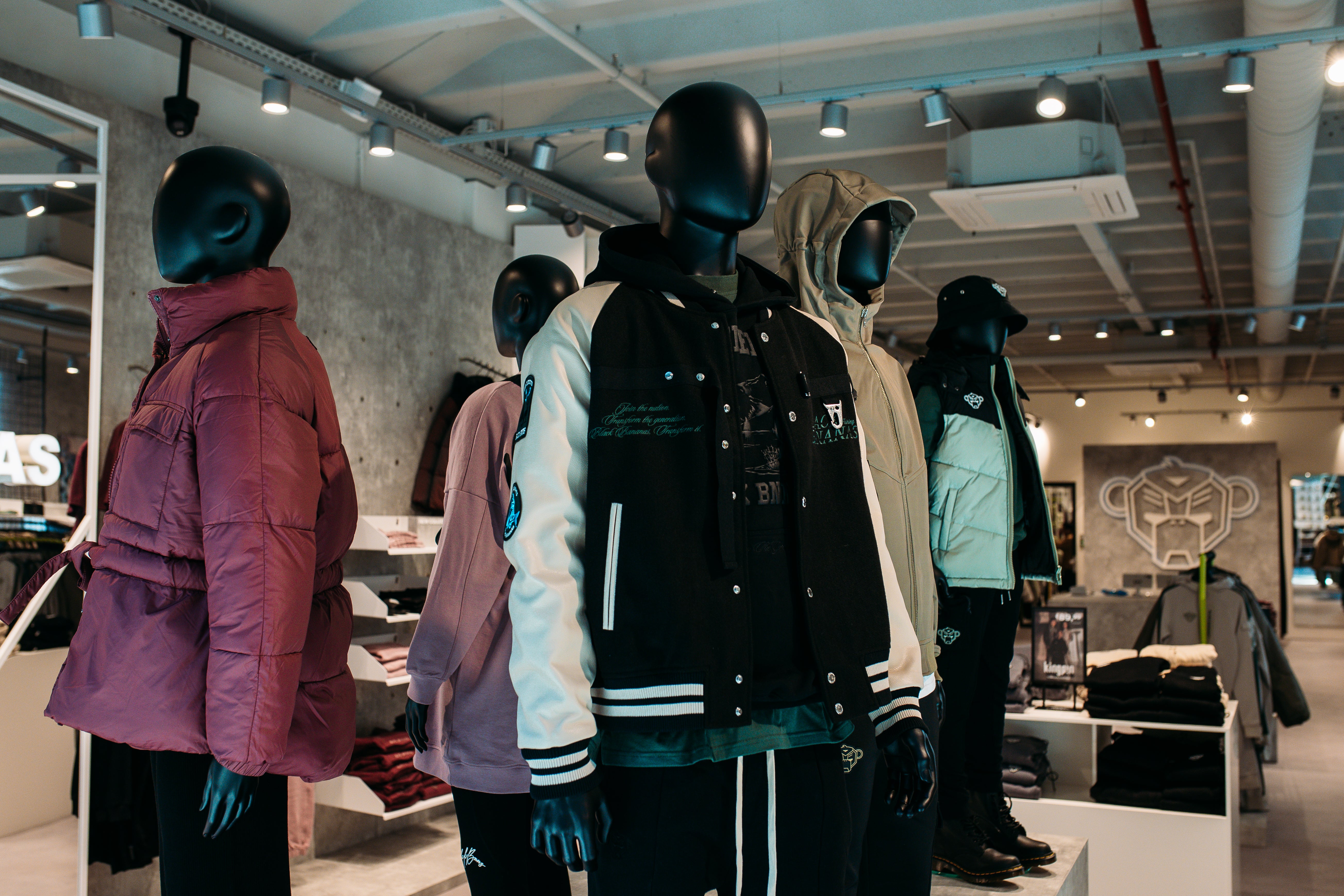 Con esta tienda BLACK BANANAS vuelve al lugar donde empezó todo. El aspecto y la sensación de esta tienda están inspirados completamente en "HOMECOMING". Al entrar en la tienda, te recibe el conocido y enorme Convoy Monkey . El Monkey aterrizó en la tienda, lo que se traduce en paredes desgarradas, muebles abollados y estantes de ropa. El concepto de la tienda debe mejorar la experiencia de los clientes y las ventas de la colección, pero también reunir a la comunidad y a los artistas en el mundo BB.