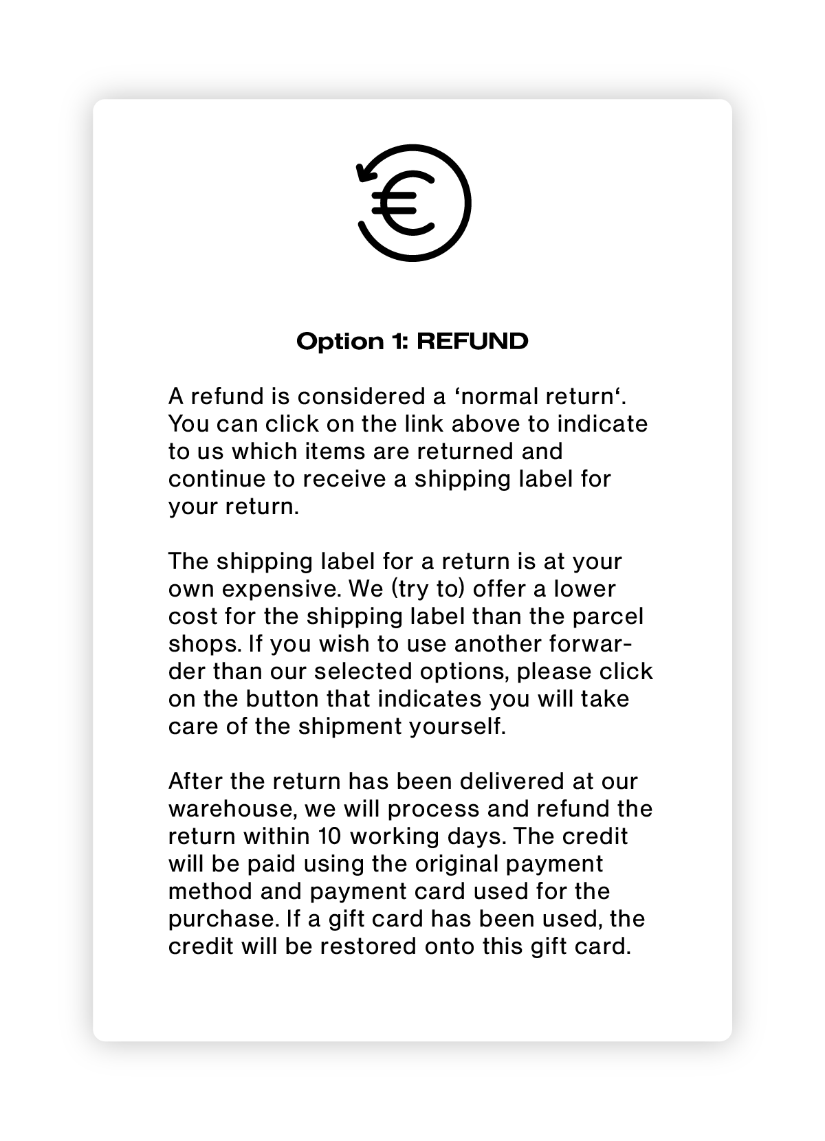 Una vez que nuestro centro de distribución haya recibido su devolución, recibirá un reembolso o una factura ajustada de Klarna en un plazo de 10 días laborables.